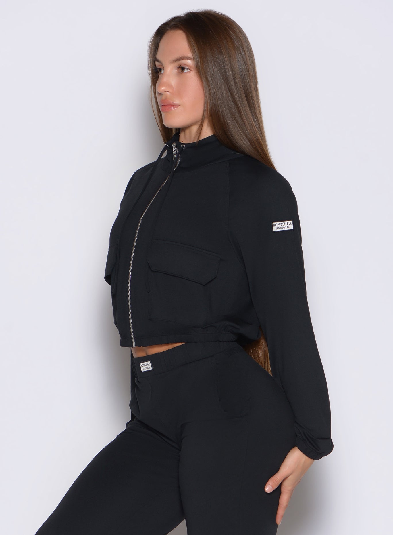 Elevated lounge meets effortless style. Soft. sleek. and perfectly balanced — fitted yet loose with a high neck. front zip. side pockets. and cinched cuffs. The ultimate mix of comfort and confidence.
